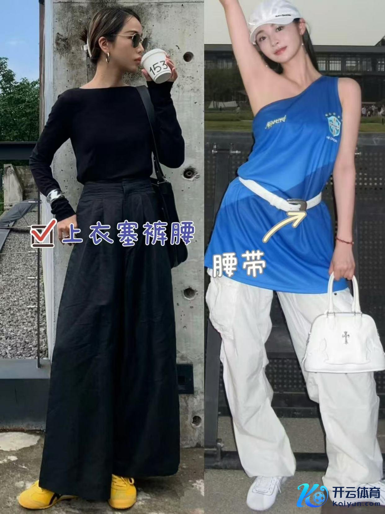 套路①上衣塞裤腰+腰带,改善肉体比例