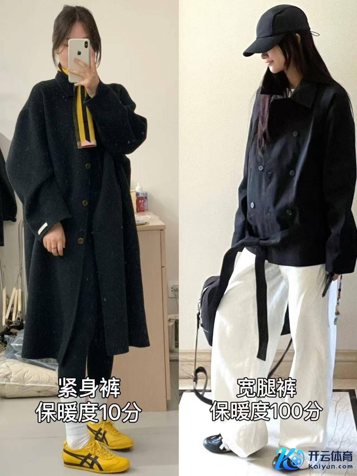 ⑴宽腿裤比紧身裤愈加显瘦,御寒性不异好