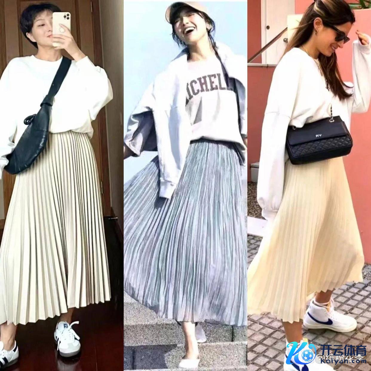 白色卫衣搭配米色百褶裙,脚穿小白鞋和袜子呼应,举座崭新祥和。卫衣往上折叠到腰部,呈现出高腰线,突显躯壳比例。玄色斜挎包在腰间处点缀,增多前锋感,打造出芳华活力不失失业造型。