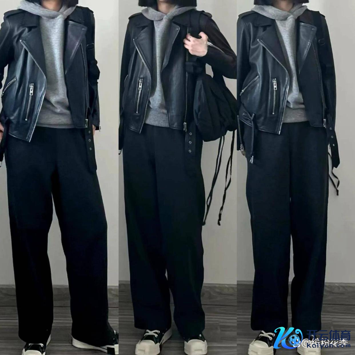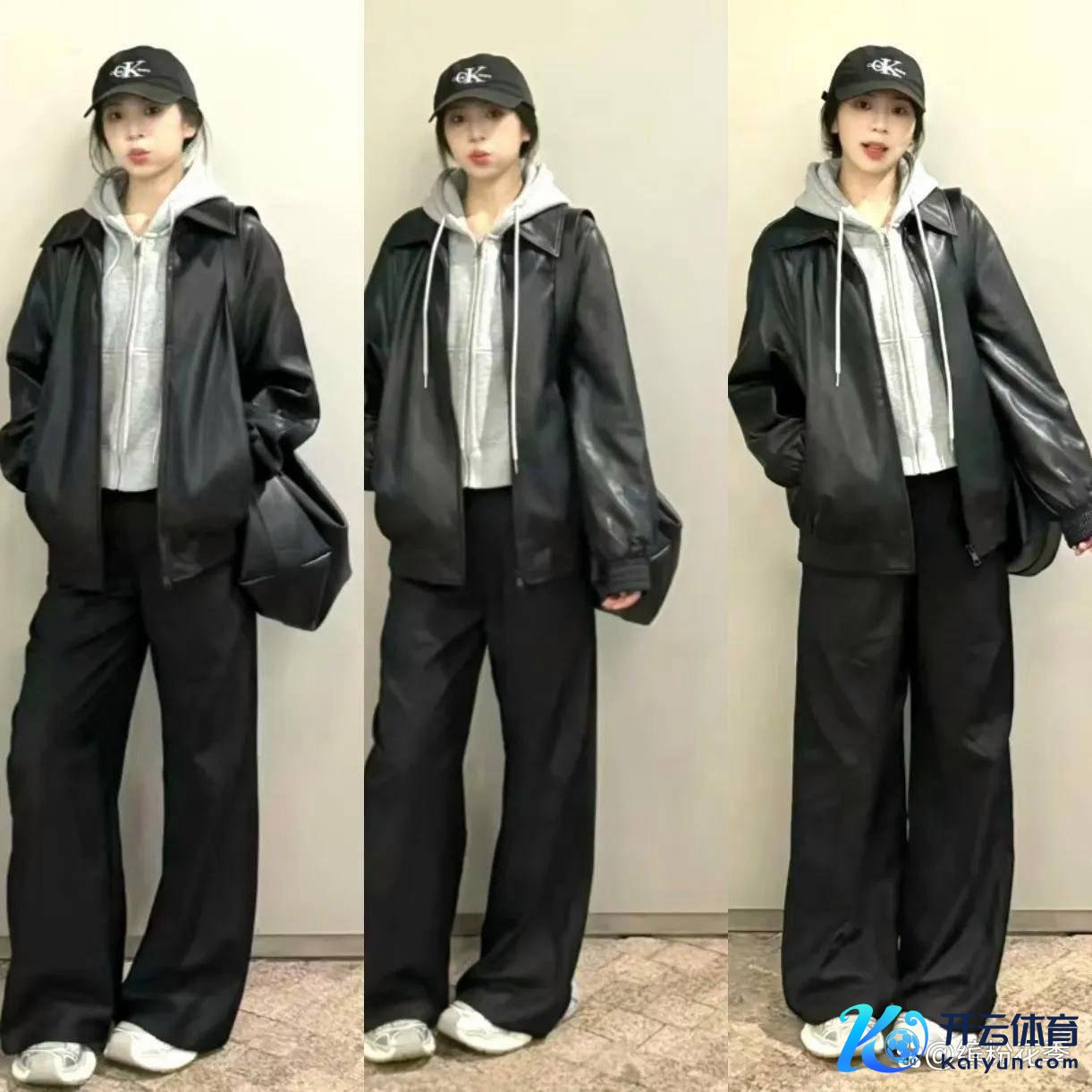 玄色皮夹克外衣,如若内搭灰色带帽卫衣,并把帽子翻到皮夹克外面增多前锋感。搭配玄色西装裤一稔,又飒又帅气。玄色帆布鞋增多年青元素,50+女性这么穿,追究淘气又减龄。