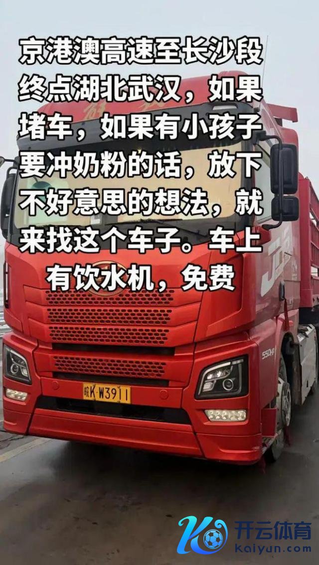 近日,一位货车司机在卤莽平台发布了一则视频,视频现实写着:"要是堵车,要是有小孩子要冲奶粉的话,放下不好有趣的念念法,就来找这个车子。车上有饮水机,免费。"