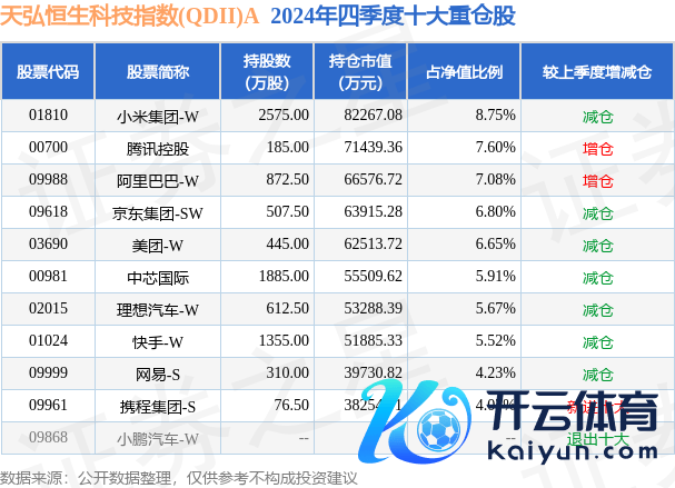 天弘恒生科技指数(QDII)A为指数型-外洋股票基金,证明最新一期基金季报暴露,该基金钞票设立:股票占净值比92.75%,无债券类钞票,现款占净值比7.05%。基金十大重仓股如下: